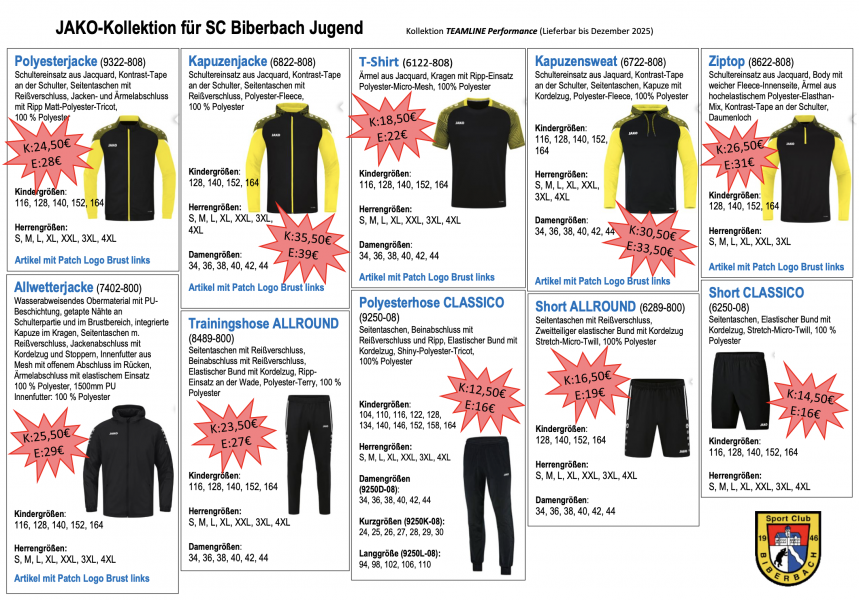 Bei Interesse an Trainingskleidung aus der Vereinskollektion, meldet euch einfach bei euren Trainern/Betreuern.