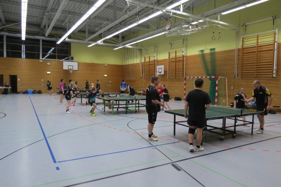 (MK) Am Montag war es wieder so weit, die alljährliche Vereinsmeisterschaft stand an. Doch anstatt der üblichen Doppel- und Einzelspiele gab es heuer etwas Besonderes: Ein sogenanntes „Schleifchenturnier“, bei dem die Doppelpartner nach jedem Spiel neu zugeteilt wurden. Die Sieger jeder Runde erhielten jeweils ein „Schleifchen“, die von Karin Kahl extra dafür angefertigt worden waren. Bei den entstandenen bunten Doppelpaarungen stand der Spaß am Tischtennisspielen im Vordergrund, sodass die Endplatzierungen nicht mehr so wichtig waren.