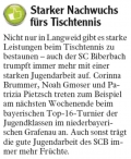 Bevor für die insgesamt neun Biberbacher Tischtennisteams Mitte September die Spielsaison beginnt, steht für drei Nachwuchsasse aus der Jugendabteilung noch ein besonderes Ereignis an. Corinna Brummer, Noah Gmoser und Patrizia Pietzsch treten am nächsten Wochenende beim bayerischen TOP 16 Turnier der Jugendklassen im niederbayerischen Grafenau an.