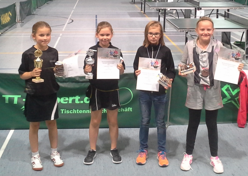 (MM) Mit gleich vier Titeln kehrte unsere Tischtennisjugend von der Bezirksmeisterschaft in Höchstädt zurück. Besonders erfolgreich waren einmal mehr Patrizia Pietzsch und Corinna Brummer, die beide je zwei Titel erringen konnten. Für Patrizia war der Sieg in der Einzelkonkurrenz der Jugend 13 eine große Überraschung, schaffte sie es doch die favorisierte Konkurrenz aus Westheim und Kühbach in Schach zu halten. Außerdem holte sie zusammen mit ihrem Partner vom TSV Rain/Lech auch noch den Titel im Mixed. Ebenfalls im Mixed erfolgreich war Corinna Brummer, die mit Noah Dietmayer aus Krumbach sensationell den Titel holte. Hauchdünn unterlag sie dann leider trotz starker Leistung im Endspiel des Einzelwettbewerbs, worüber aber ein weiterer Titel im Doppel hinweg trösten konnte. Jana Weidenhüller schaffte ebenfalls überraschend den Sprung ins Viertelfinale und landete am Ende auf Rang 7. Für Lotte Gerstmayr und Marlene Leis galt es weiterhin Erfahrung zu sammeln, beide mussten sich am Ende mit neunten Plätzen begnügen.
